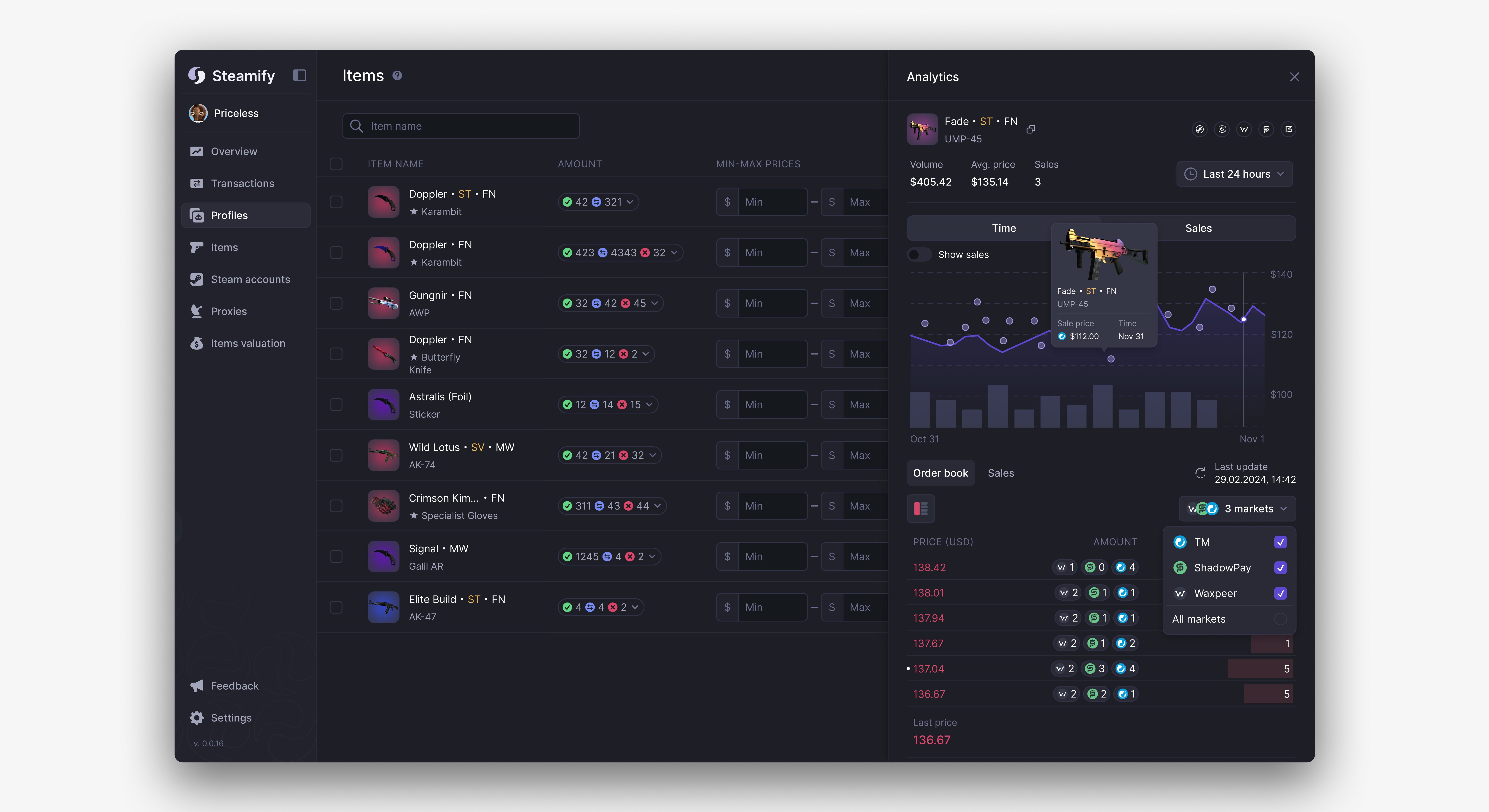 To address cases where users own multiple similar items that differ in stickers, wear level, or other attributes affecting value, we introduced a structured subtable. This view provides detailed item-level information, allowing for more precise pricing and better inventory management.